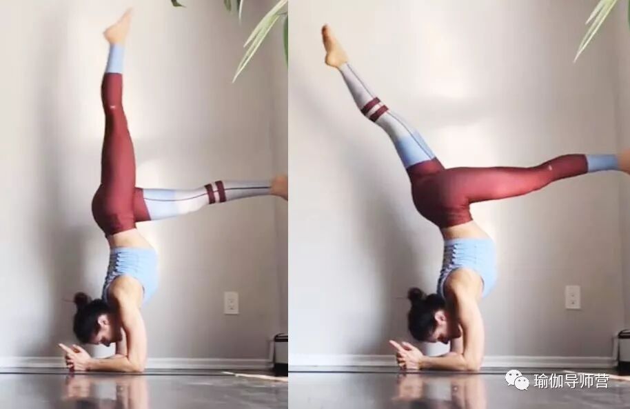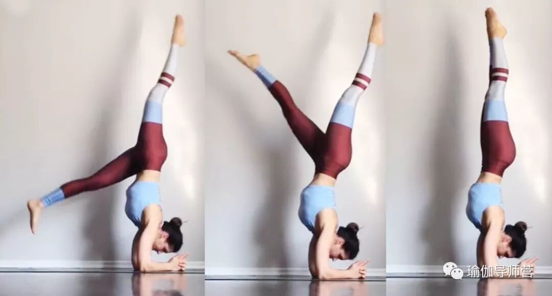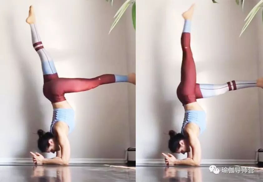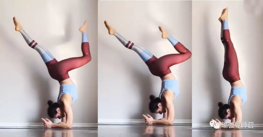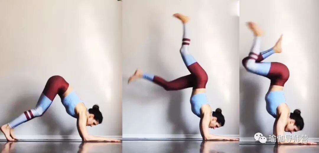 无论哪种倒立——头倒立、手肘倒立、手倒立,都不能靠惯性练习,启动核心,手臂和肩膀稳定,背部有力,脚自然就离地了。